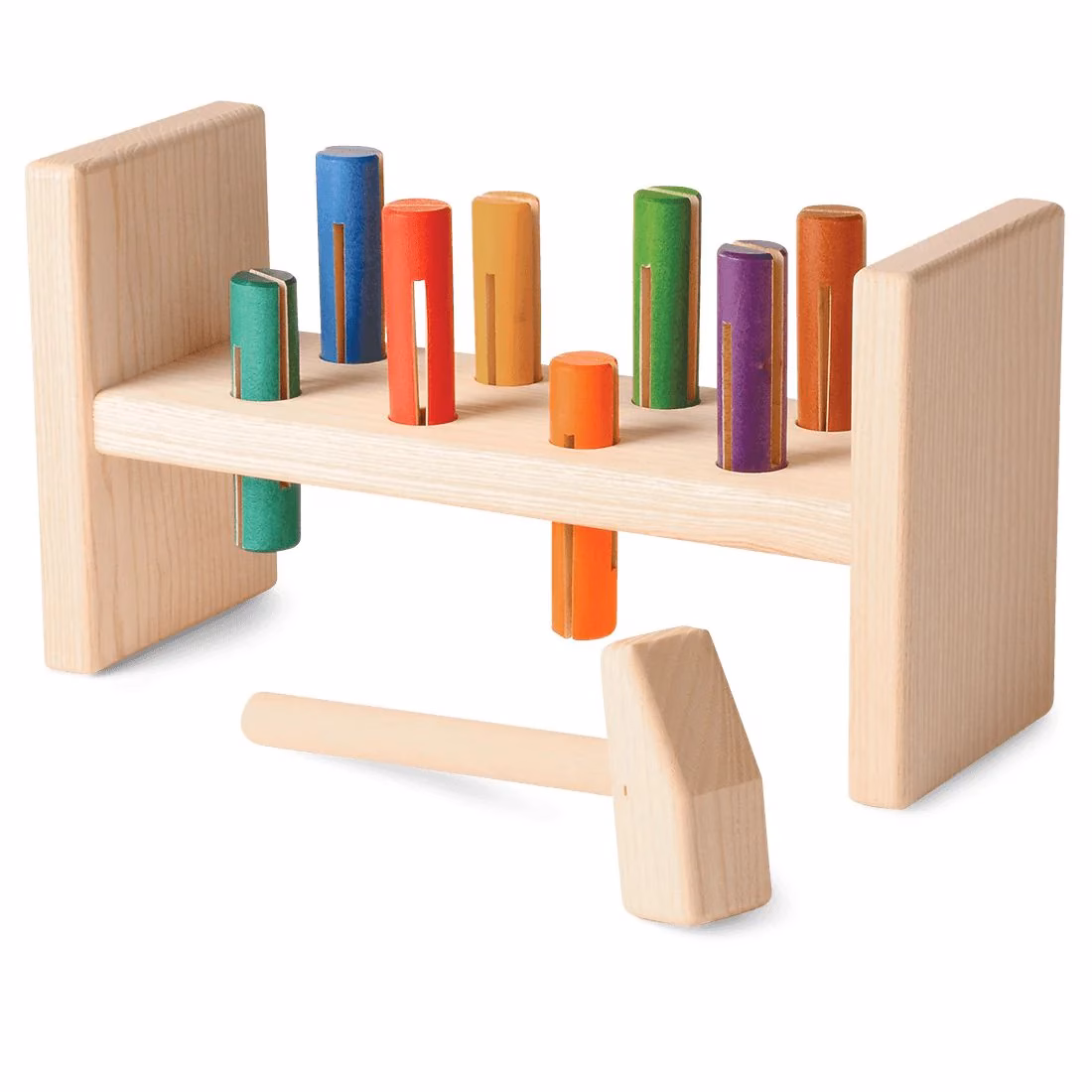 Hämmern, klopfen und Krach machen: Die Hammerbank von Atelier Passage ist ein zeitloser Spielzeugklassiker, der nicht nur Spass macht, sondern auch die Feinmotorik, Koordination und Kraftdosierung fördert.