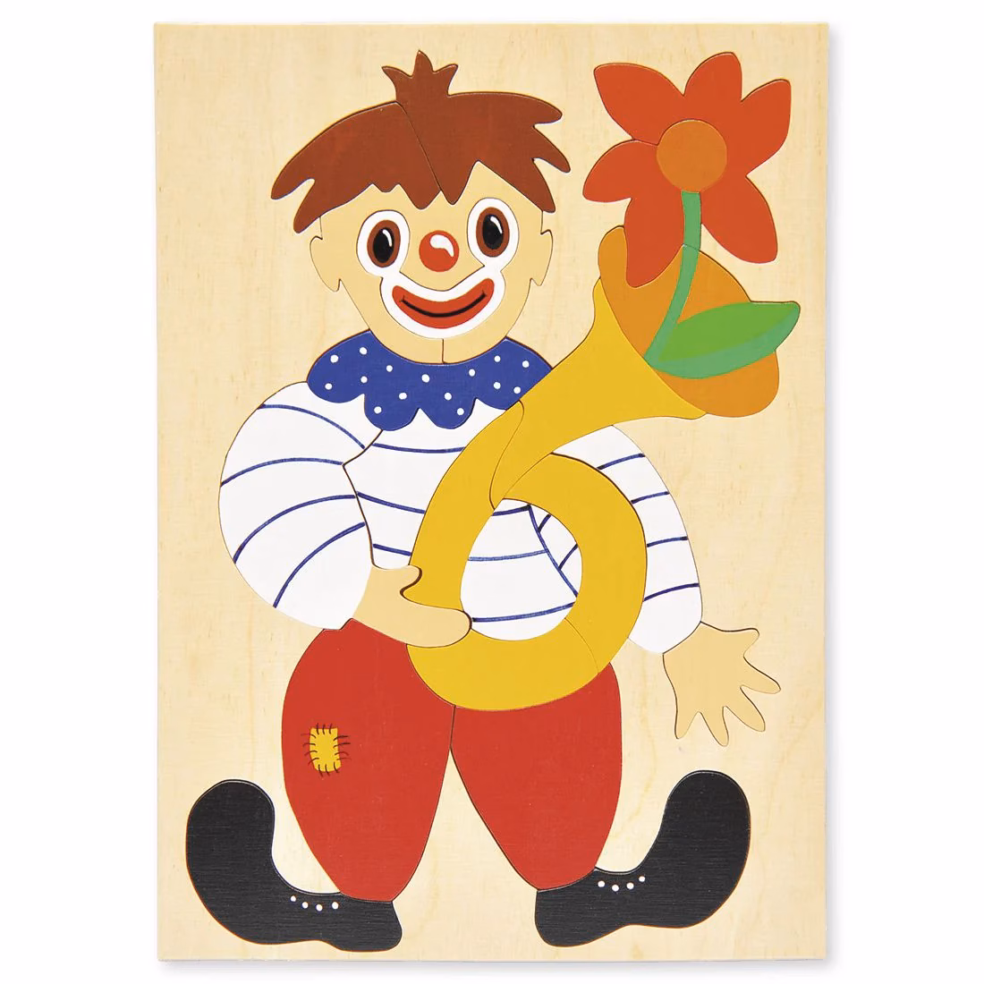 Das handbemalte Holzpuzzle „Clown“ von Atelier Passage begeistert durch seine leuchtenden Farben und seine kindgerechte Formgebung. Jedes Puzzleteil ist sorgfältig gefertigt und lässt sich leicht greifen – ideal für kleine Kinderhände.