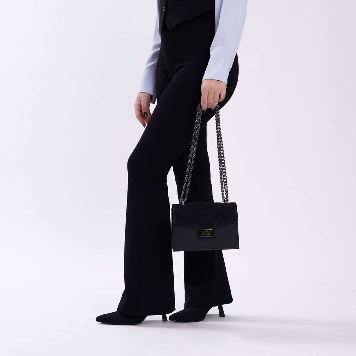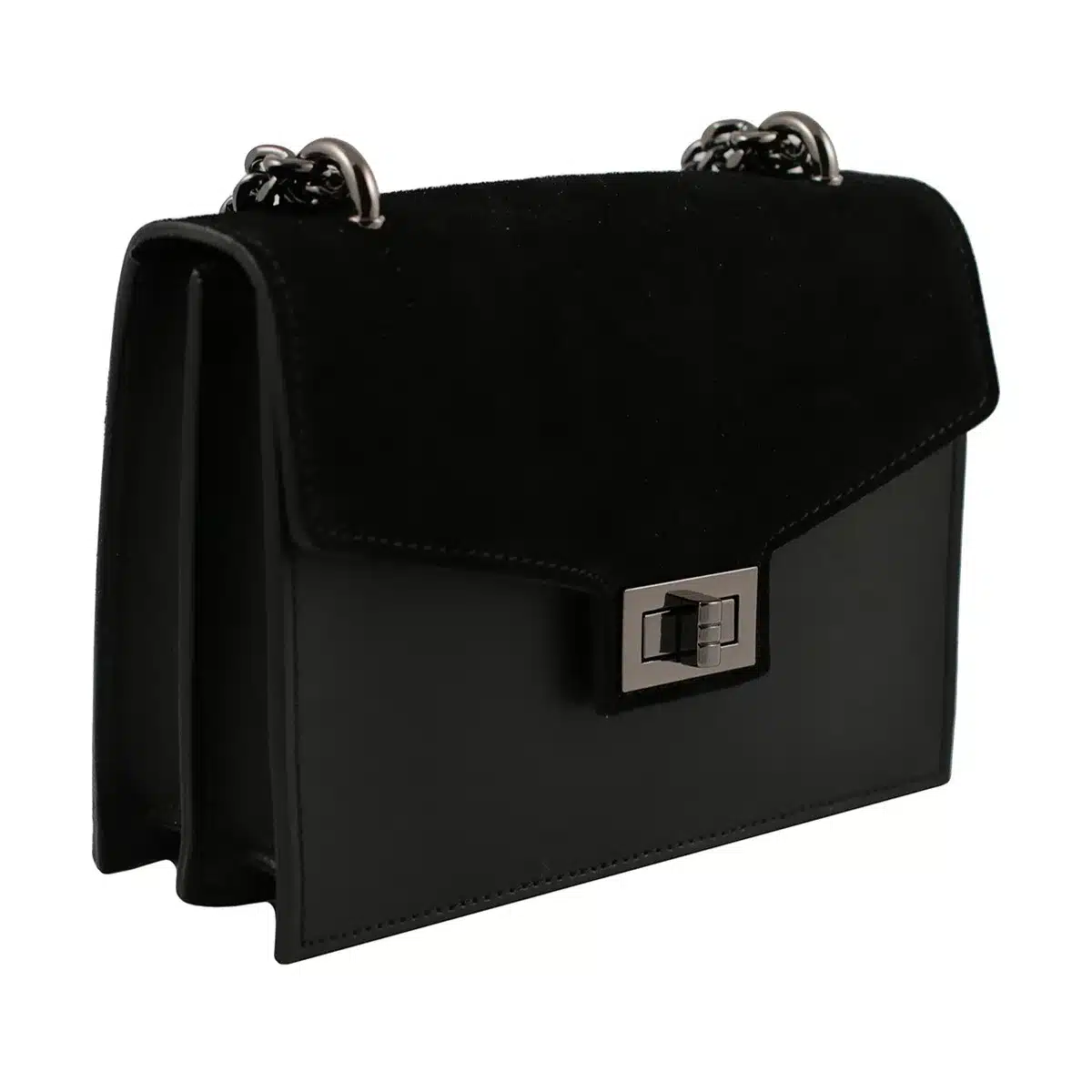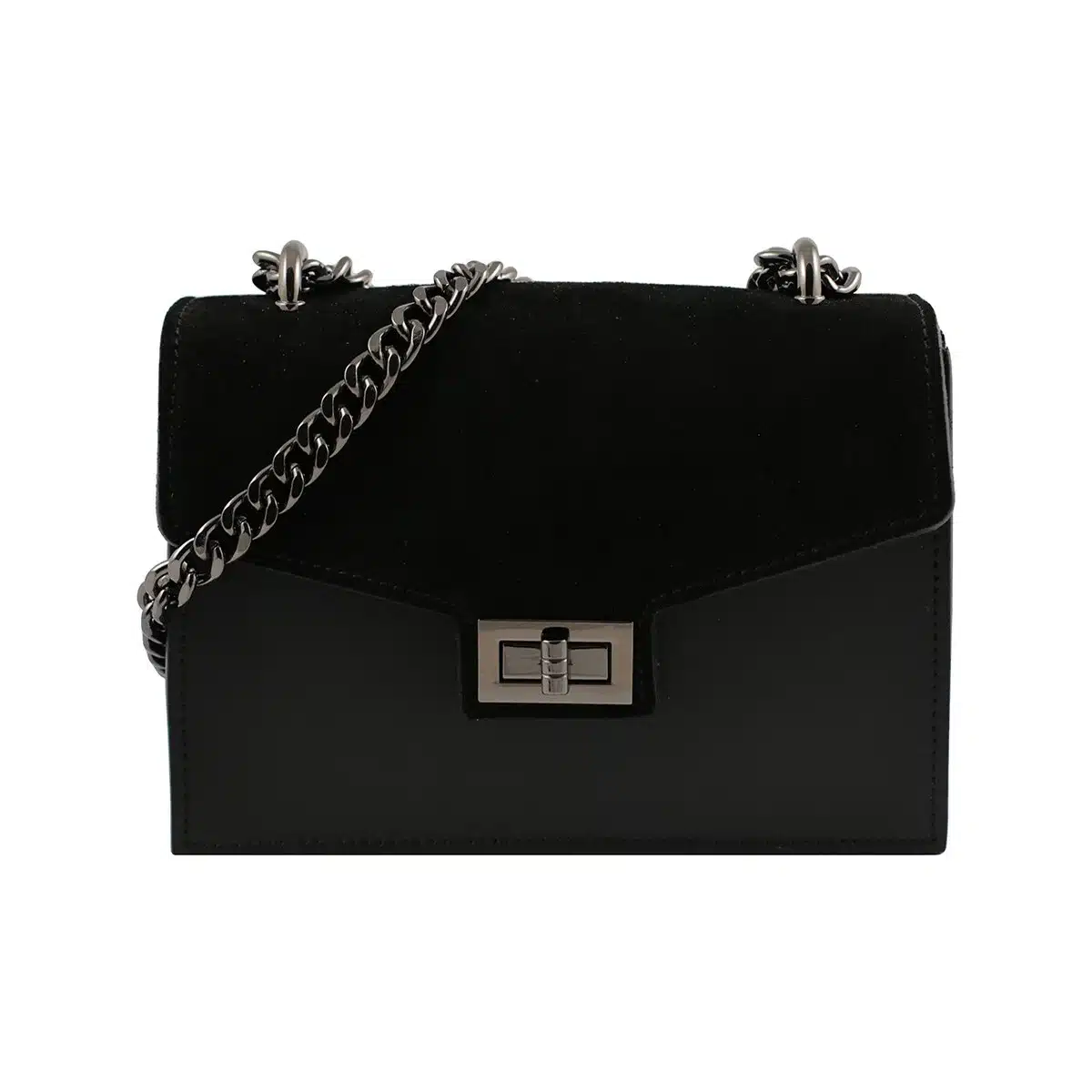 Das kompakte Format bietet dank der durchdachten Innenaufteilung mit drei Innenfächern, darunter ein Reissverschlussfach, genügend Platz für alle wichtigen Essentials. Das Innenfutter aus Baumwolle verleiht der Tasche zusätzliche Wertigkeit, während der verstellbare Metall-Schultergurt für angenehmen Tragekomfort sorgt.