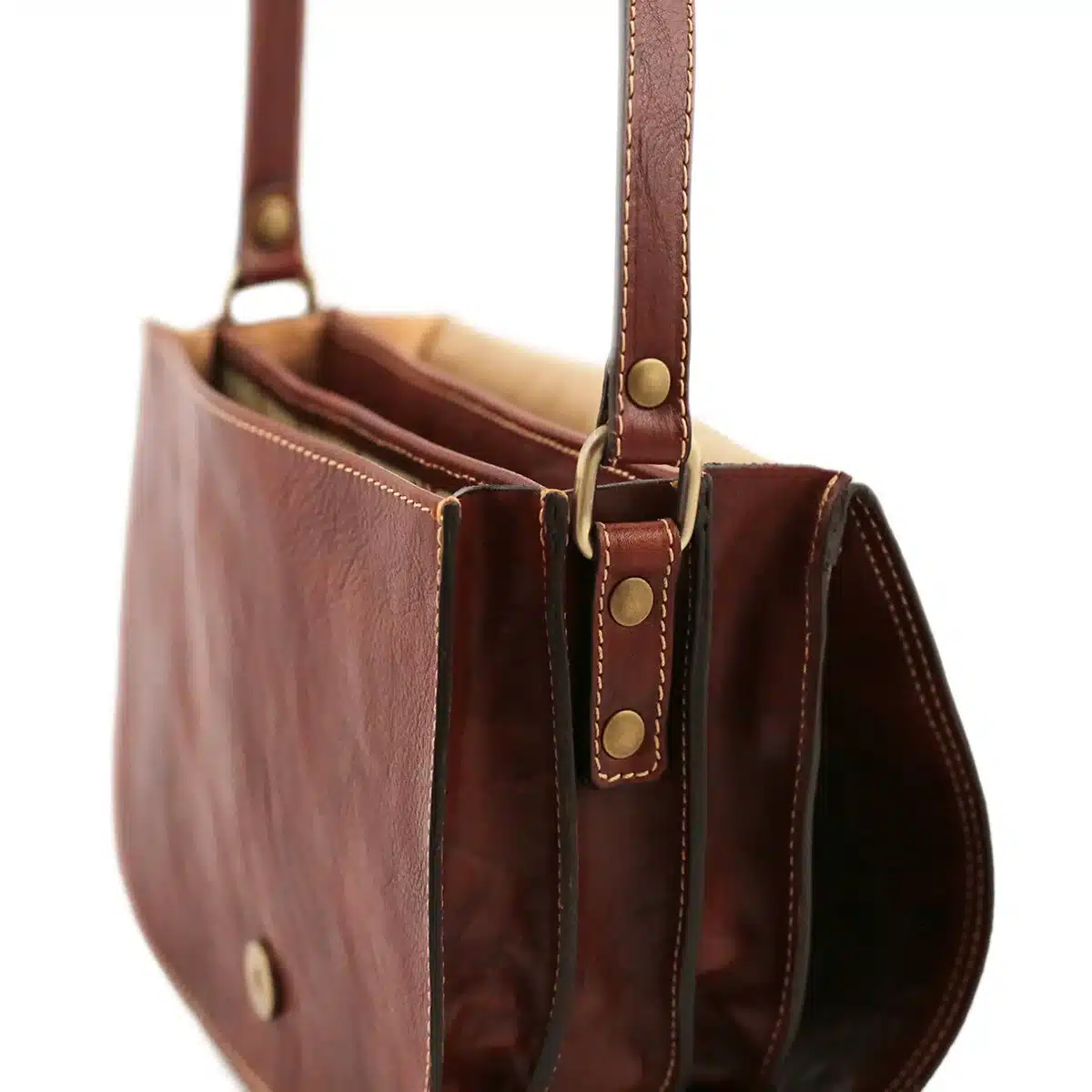 Umhängetasche aus Leder „Tolfa“ – klassische braune Ledertasche von Fantini Pelletteria