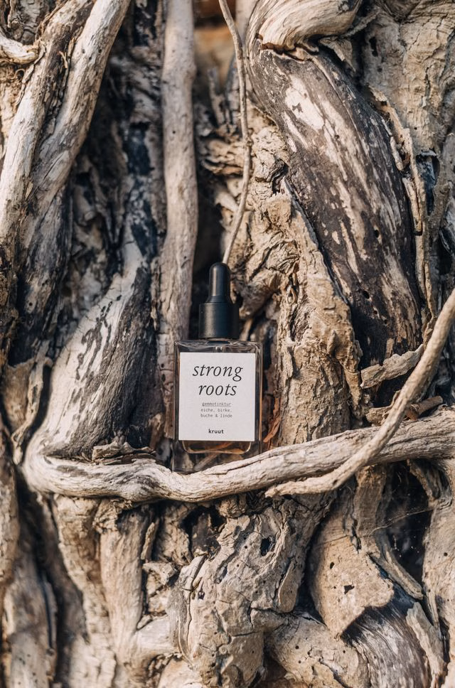 Die Tinktur Strong Roots von kruut schenkt dir Erdung und Gelassenheit im hektischen Alltag. Junge Baumknospen von Eiche, Birke, Buche und Linde bringen die Ruhe des Waldes direkt zu dir – für mehr Stabilität, Ausgeglichenheit und innere Stärke.