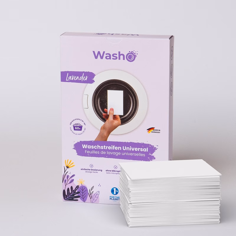 Die neuen Washo Waschstreifen „Lavendel“ machen Waschen noch einfacher – und nachhaltiger. Lokal in Deutschland hergestellt, bestehen sie aus einem biologisch abbaubaren Waschkonzentrat in Streifenform – ganz ohne Mikroplastik, Palmöl oder überflüssige Chemikalien.